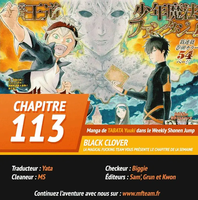 Vous êtes en train de lire Black Clover Chapitre 113 VF en ligne gratuitement sur blackcloverscan.net